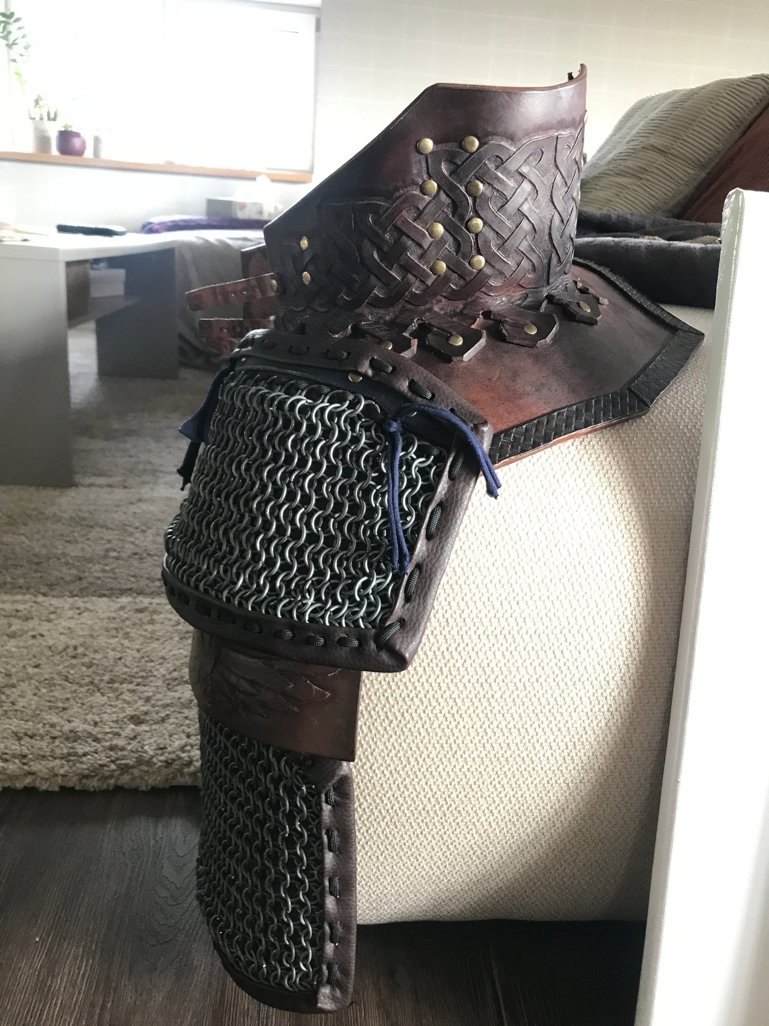 Leather + Chainmail Witcher spaulders with the Viking themed Leather Gorget.
