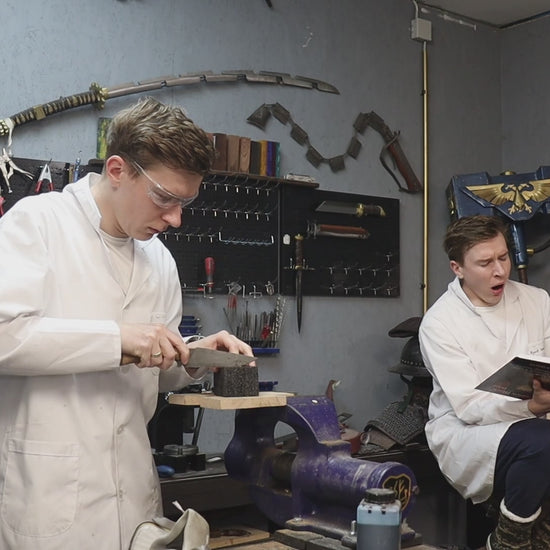 Laser-cut and hand ground out of a piece of 1.2604, a steel that is wear resistant and forgiving to work with. Coming out at around 60 HRC it stays sharp longer than most shelf-bought stainless steel knives, while remaining easy to re-sharpen.